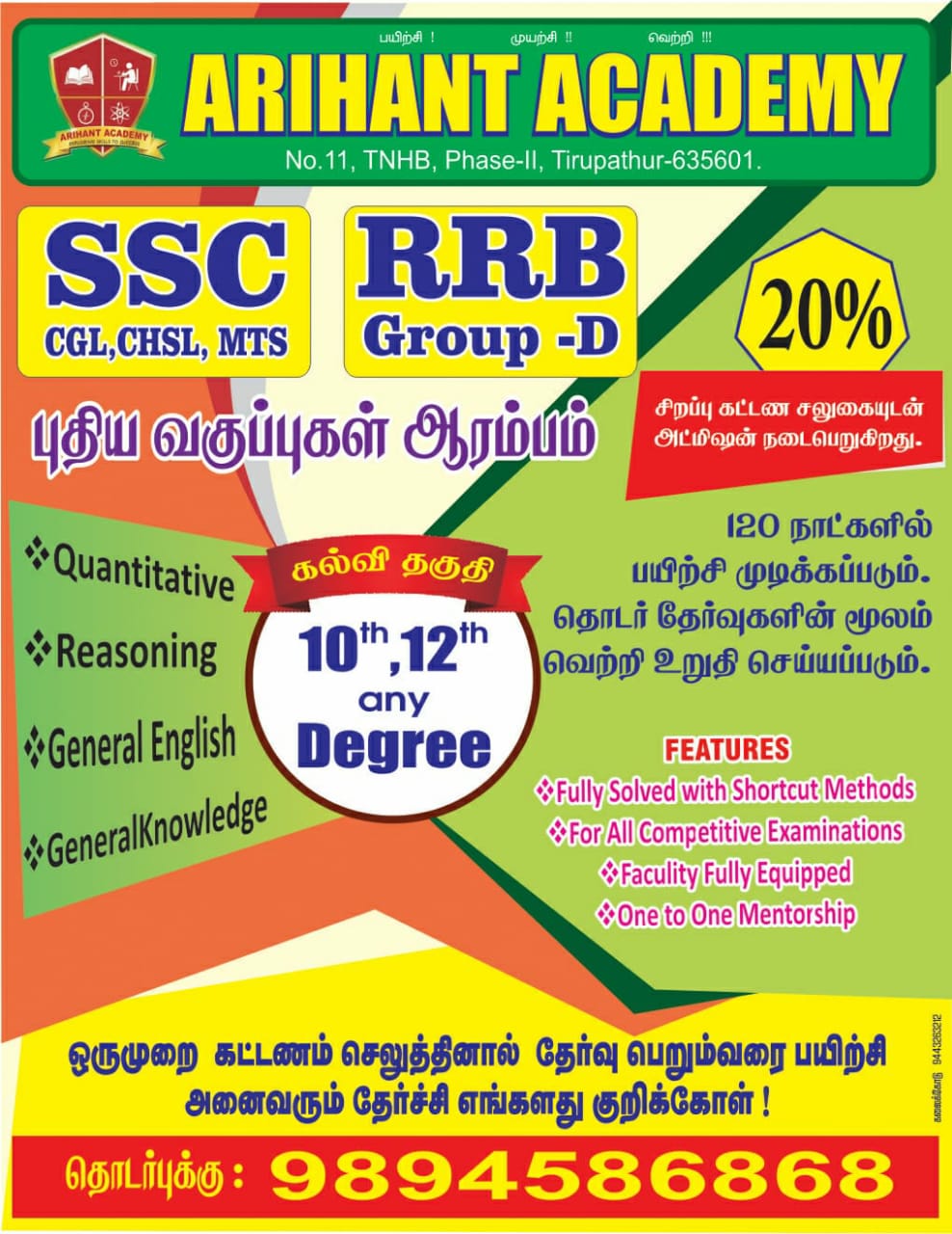 • No 1. accessible affordable academy for competitive exam in all over Tirupattur